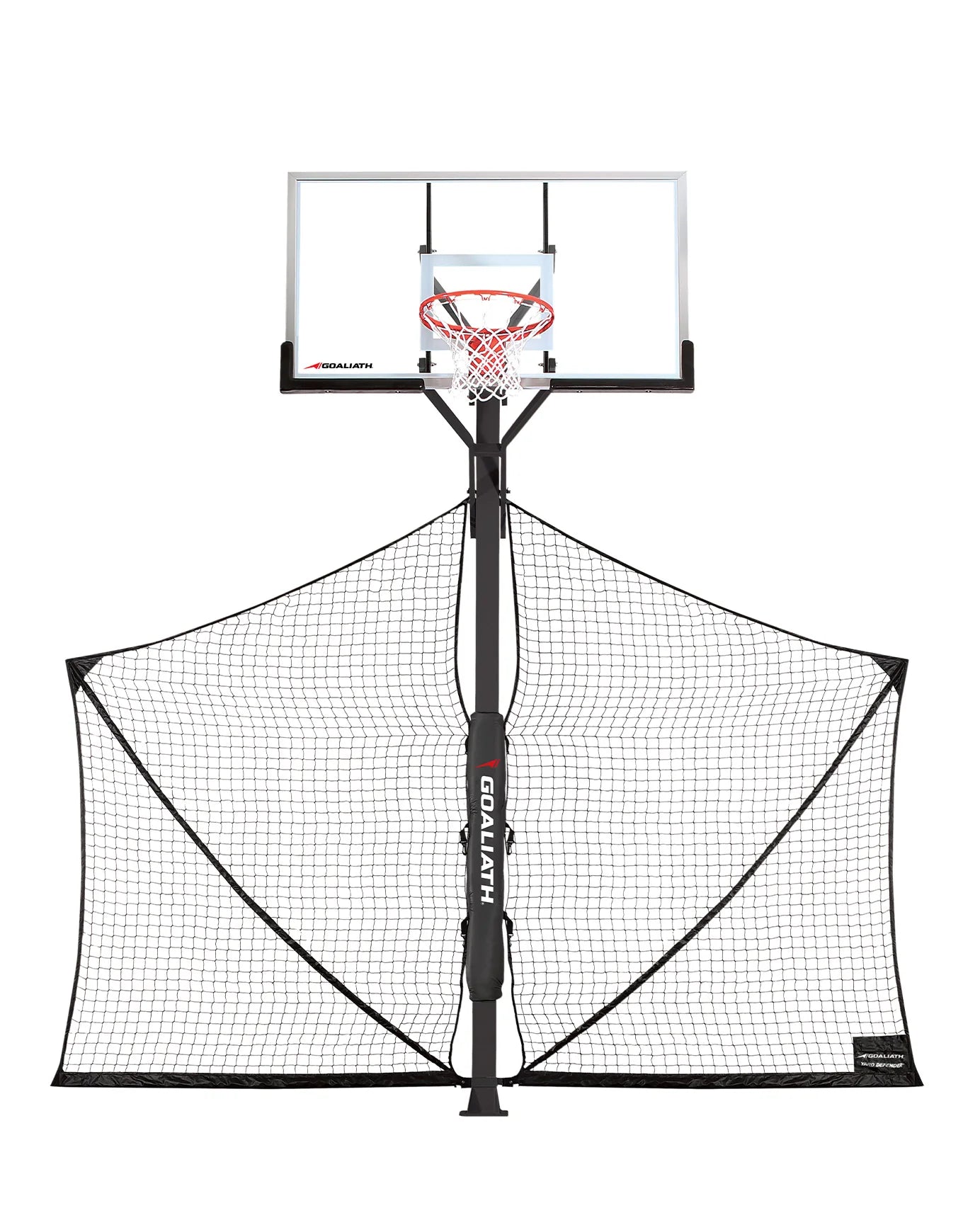 GOALIATH Guard yra beveik 3 m pločio ir 2,5 m aukščio. Yard Guard lengvai montuojamas ant 10 x 10 cm krepšinio stulpo.