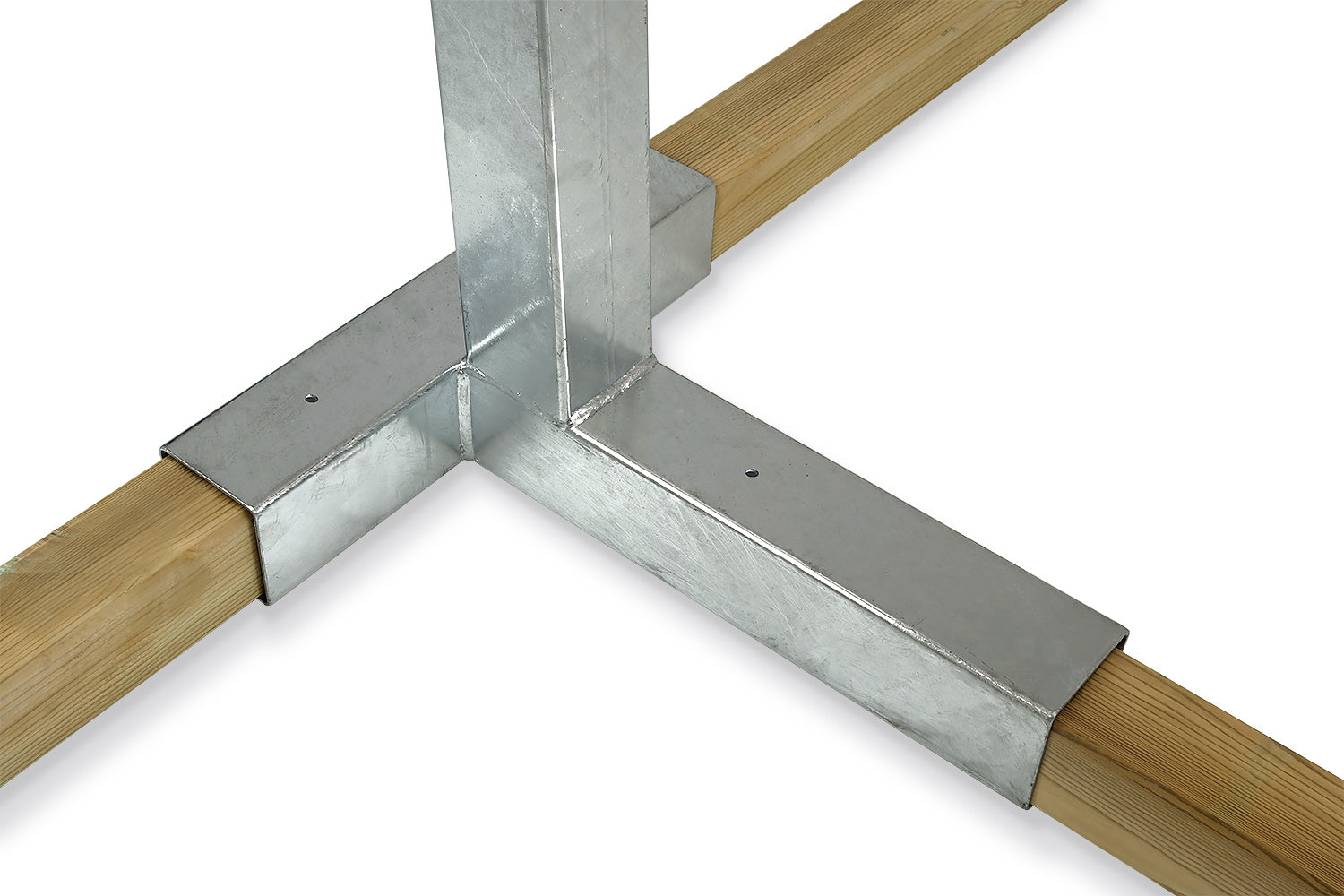 - Materiāls: stabi – alumīnijs / slīpēta ligzda – nerūsējošais tērauds / koka sijas – impregnēts priedes koks