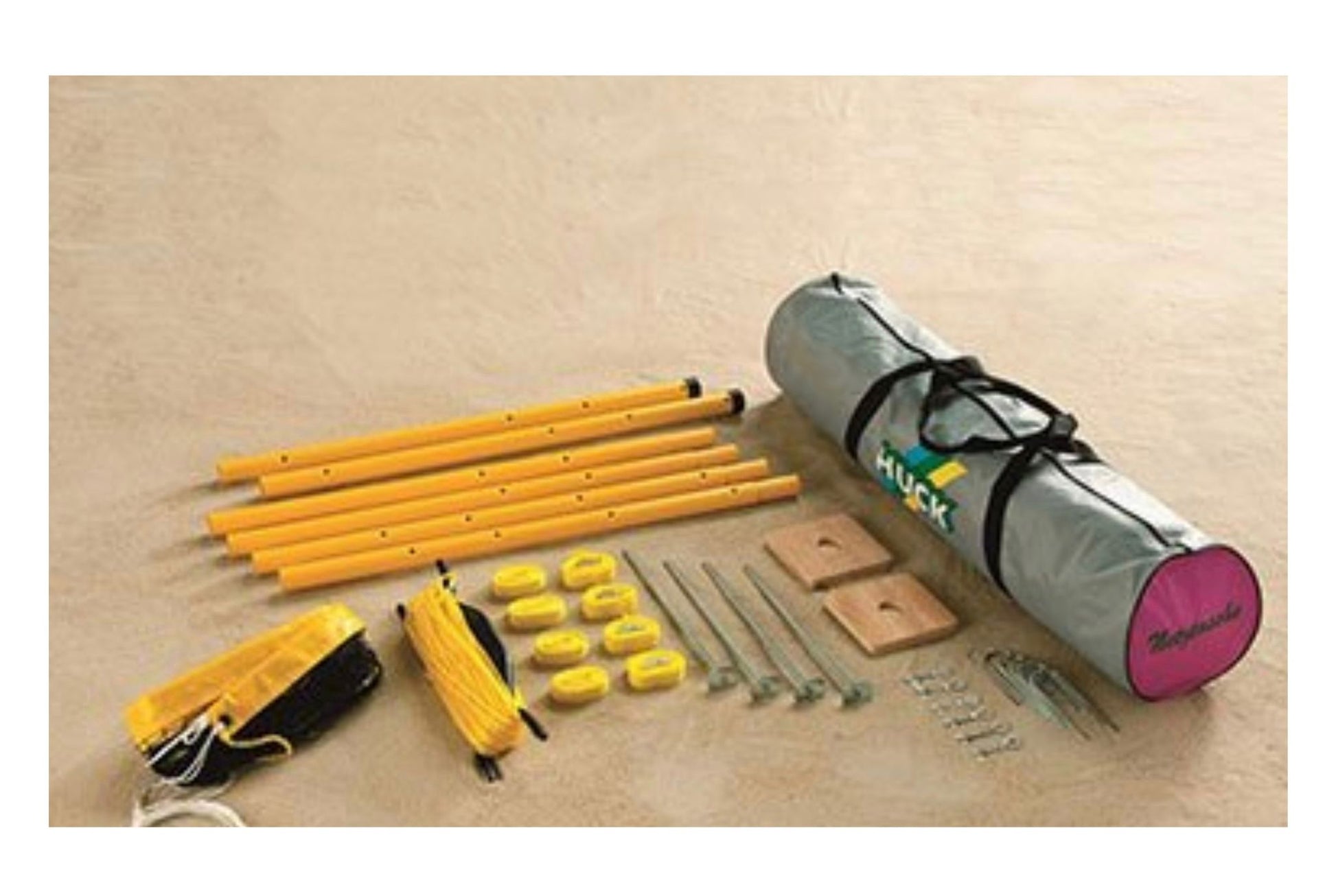 HUCK nešiojamas lauko sporto rinkinys yra paplūdimio tinklinio, badmintono ir teniso aikštelė pradedantiesiems, mokykloms ir mėgėjams. Tinklo sistema su tvirtais stulpeliais puikiai tinka treniruotėms, atostogoms, laisvalaikiui, paplūdimio stovykloms ir pramogoms.