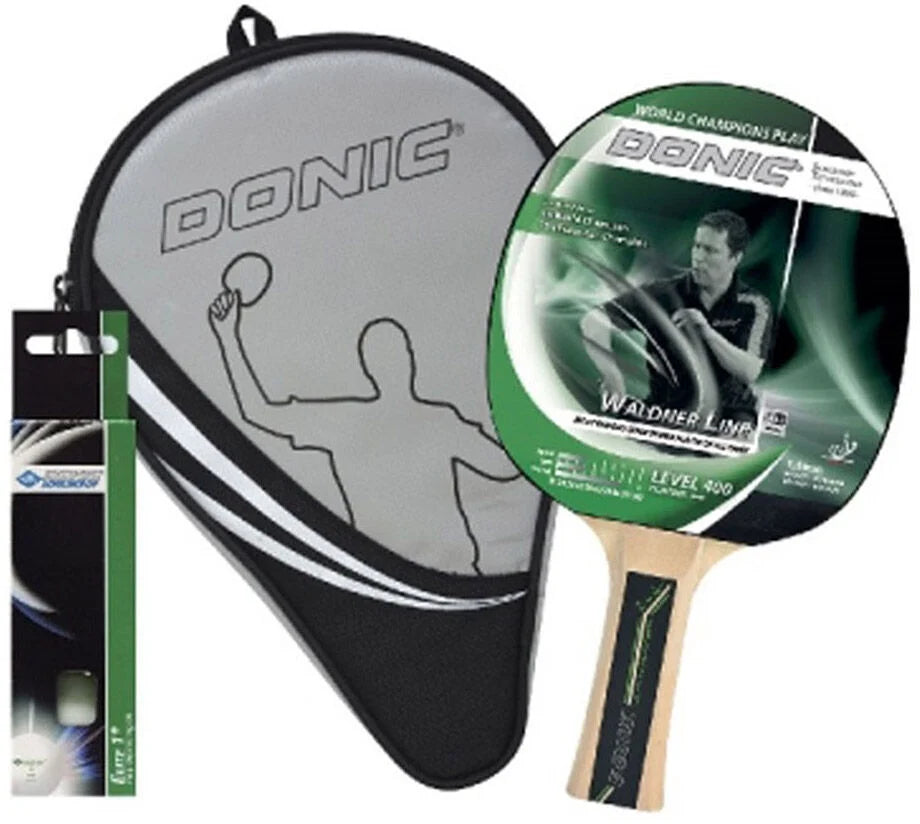 DONIC Waldner 400 table tennis bat set includes 1 bat, 1 racket cover and 3 Schildkröt Elite balls.
