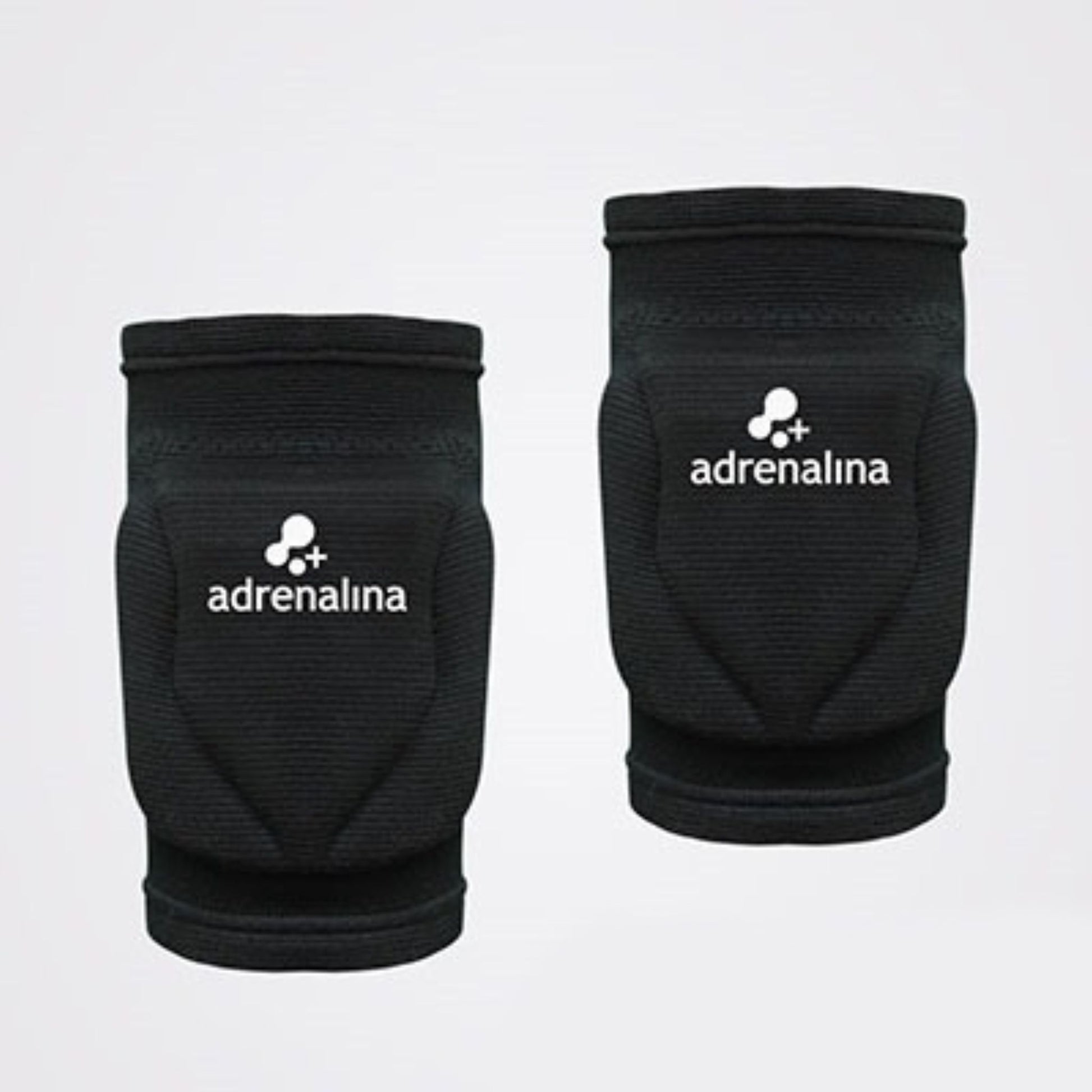 +adrenalina ceļgalu aizsargs melnā krāsā, aizsargā pret sitieniem un citiem smagiem un asiem triecieniem, kas var rasties sporta aktivitāšu laikā. Šie aizsargi nodrošina aizsardzību sportam, kas tiek veikts uz līdzenas grīdas bez paklājiņiem.